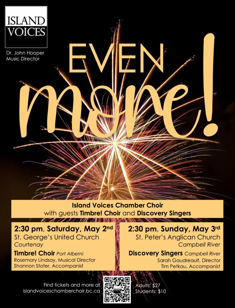 Join us on Saturday May 2nd (Courtenay) and Sunday May 3rd (Campbell River) for a joyful encore performance celebrating our audience favourites from this season, along with exciting new selections.